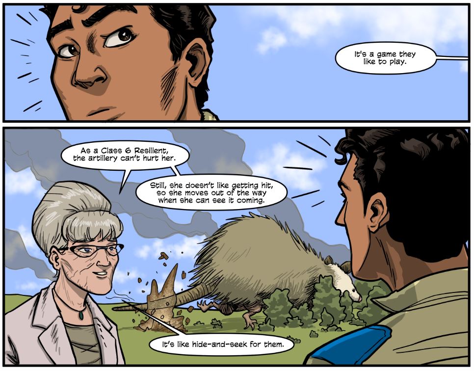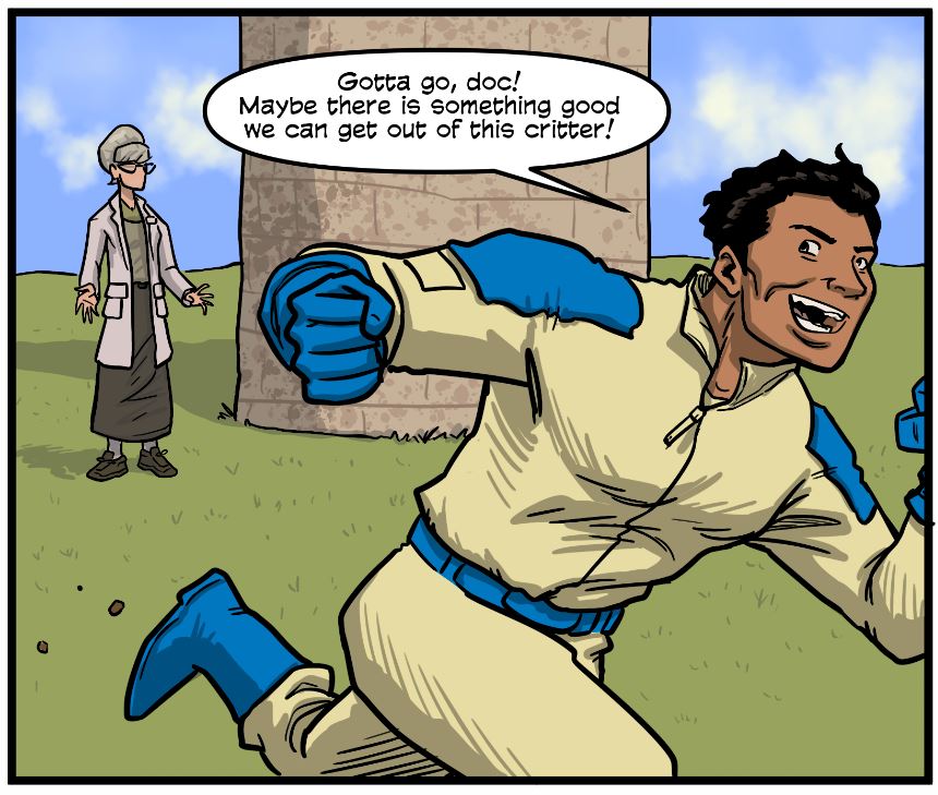 I think I most enjoy drawing people, because I really enjoy creating all kinds of facial expressions, looks, different hair styles, and poses to place them in to make them relate to the world around them. But, I also love creating original creatures and robots, too.